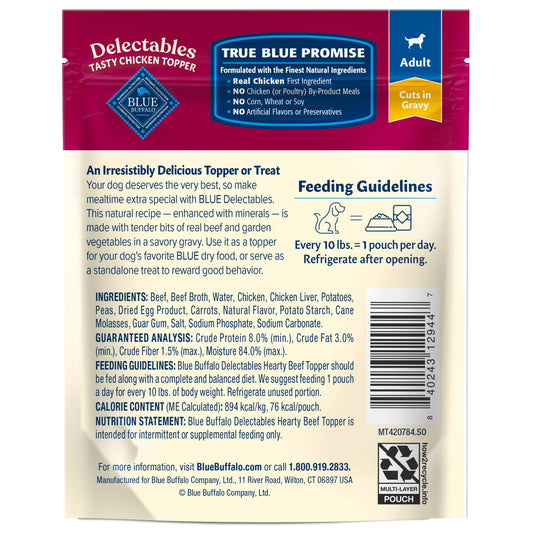 Delectables Natural Wet Dog Food Toppers, Hearty Beef, 3-Oz Pouch