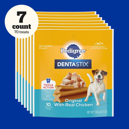 PEDIGREE DENTASTIX Small/Medium Dog Dental Treats Original Flavor Dental Bones, 5.57 Oz. Pack, Pack of 7 (70 Total Treats)