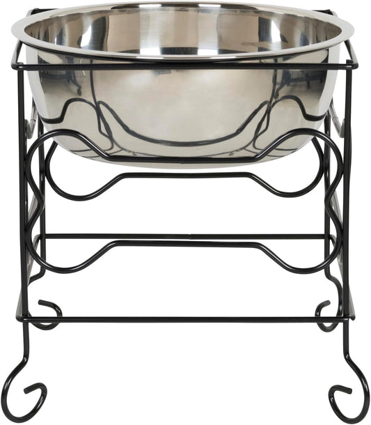 YML Elevated Stainless Steel Dog & Cat Bowl with Black Wrought Iron Stand, 10-Inch (10.75 Cups)
